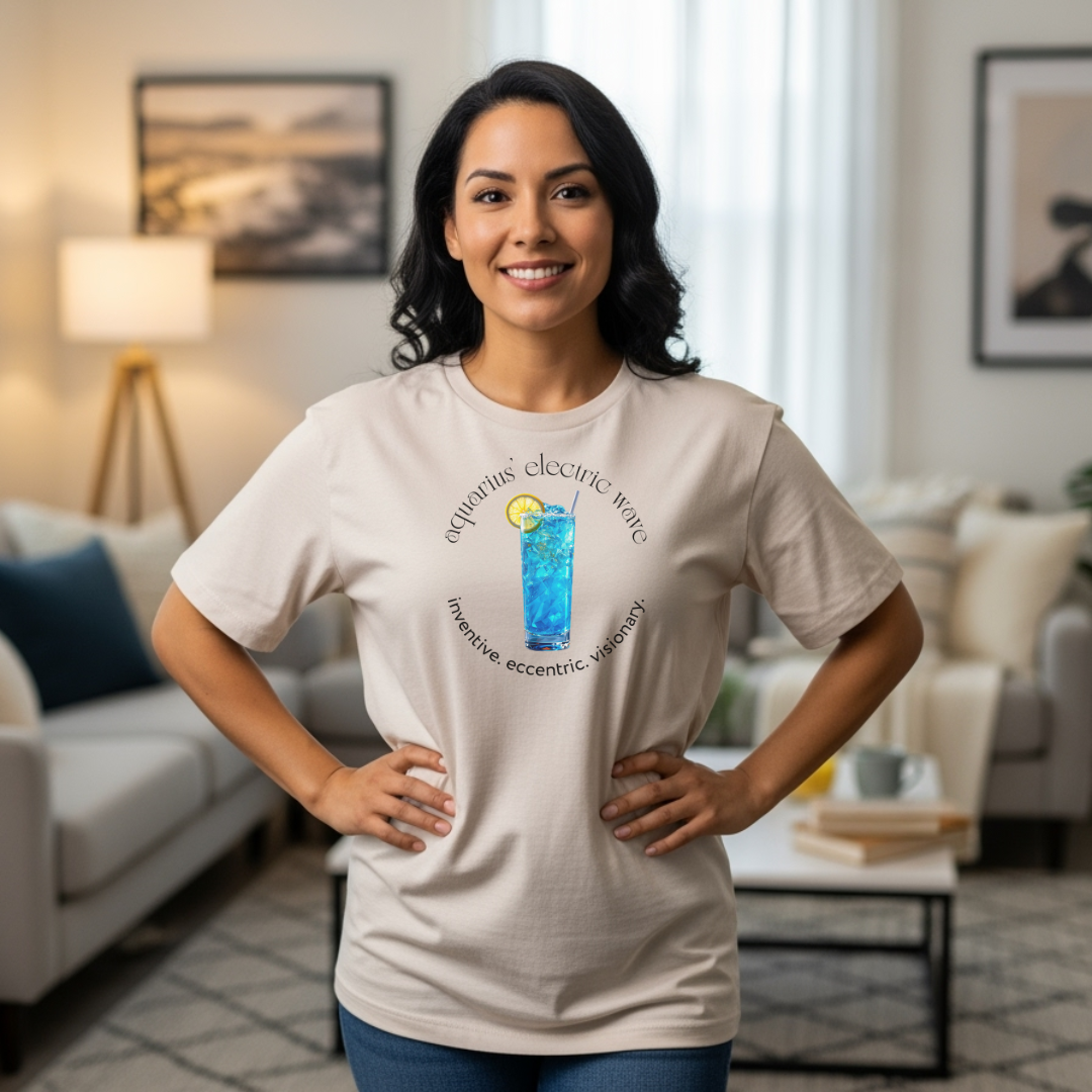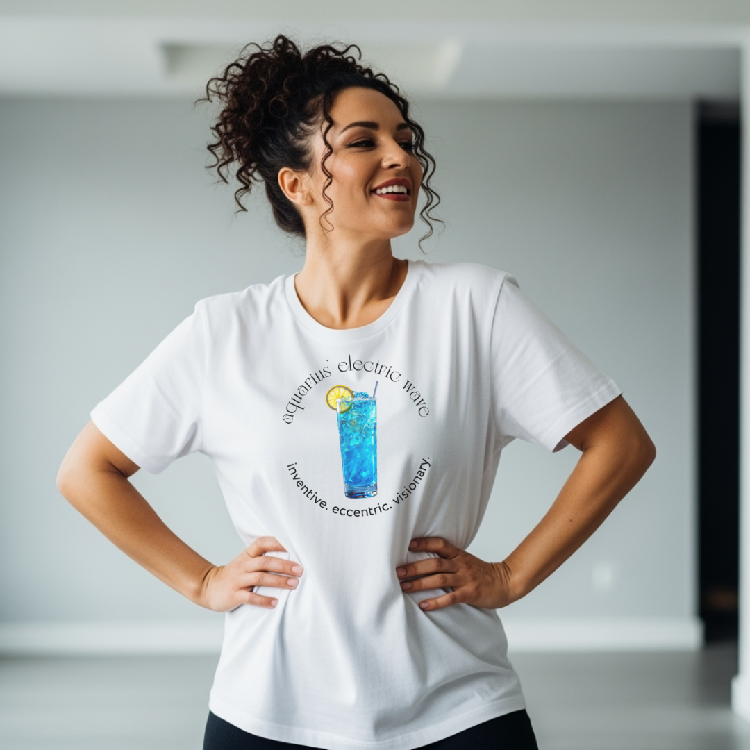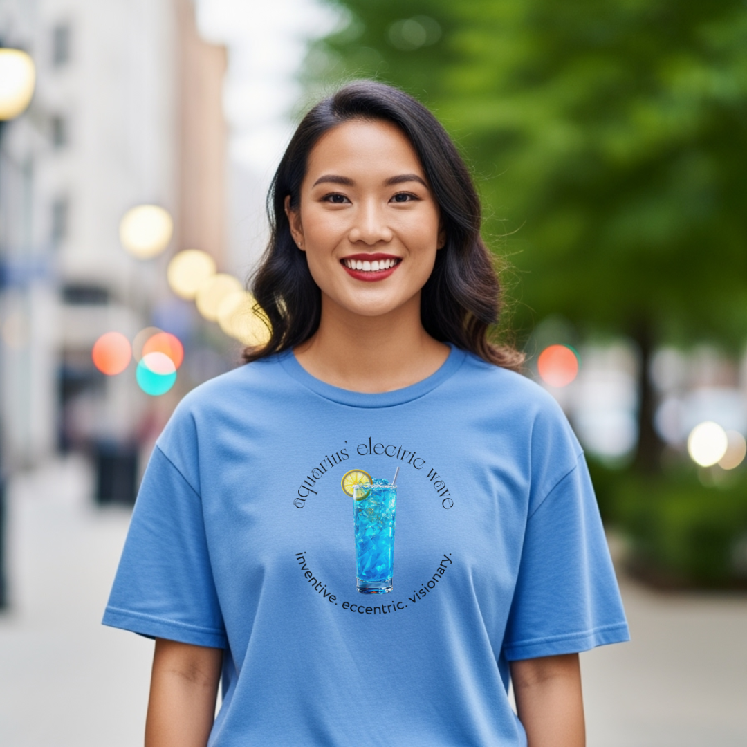 Innovative, bold, and a little unpredictable—meet Aquarius’ Electric Wave, the cocktail-inspired tee from our ASTROMIXOLOGY™ Collection that captures the zodiac’s visionary spark. Just like Aquarius energy, this shirt surges with originality, fun, and a vibe that always stands out in the crowd.