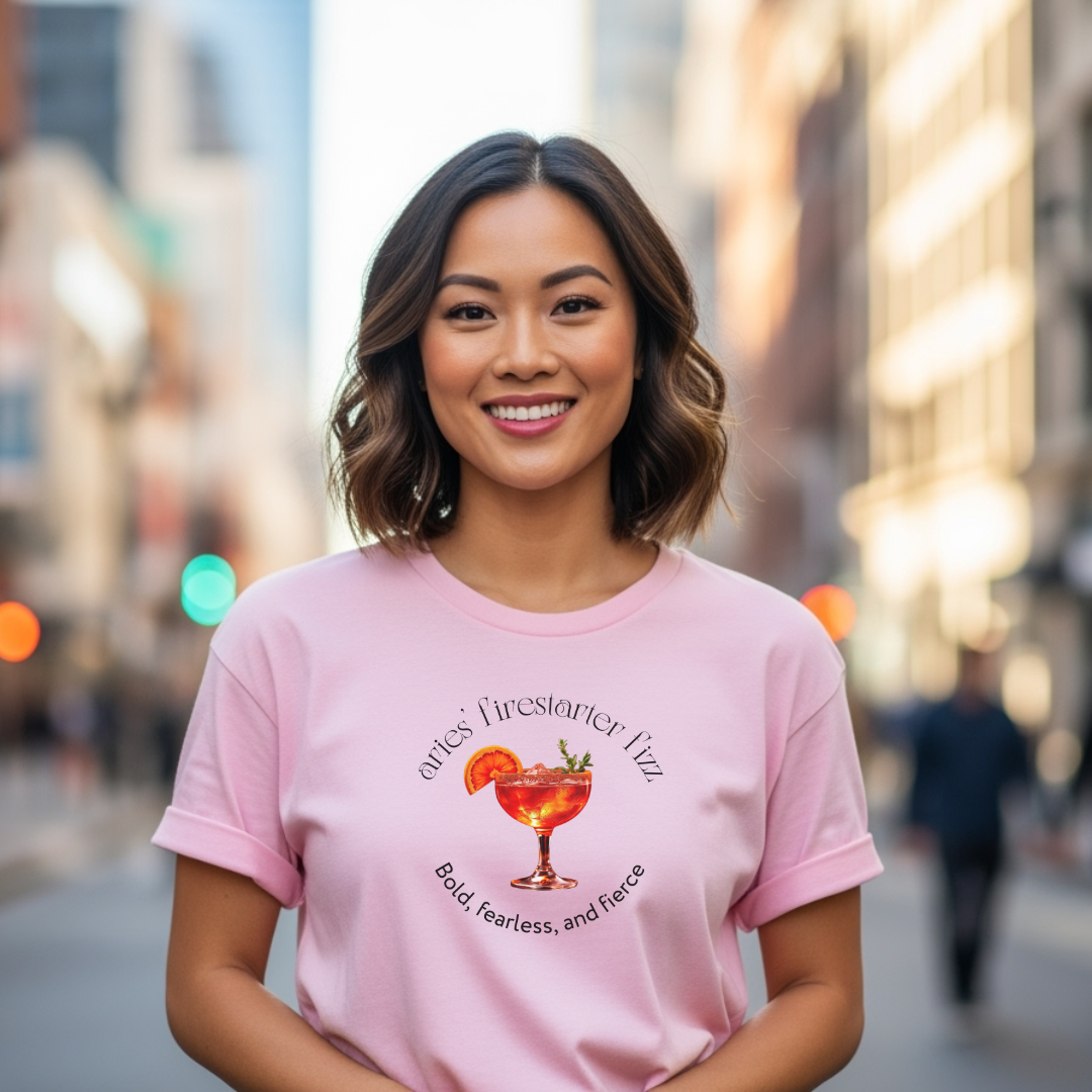 Turn up the heat with Aries’ Firestarter Fizz, the cocktail-inspired tee from our ASTROMIXOLOGY™ Collection that matches your fearless energy and fiery charm. Bold, bubbly, and a little bit daring—this shirt is made for trailblazers who live to spark the night.