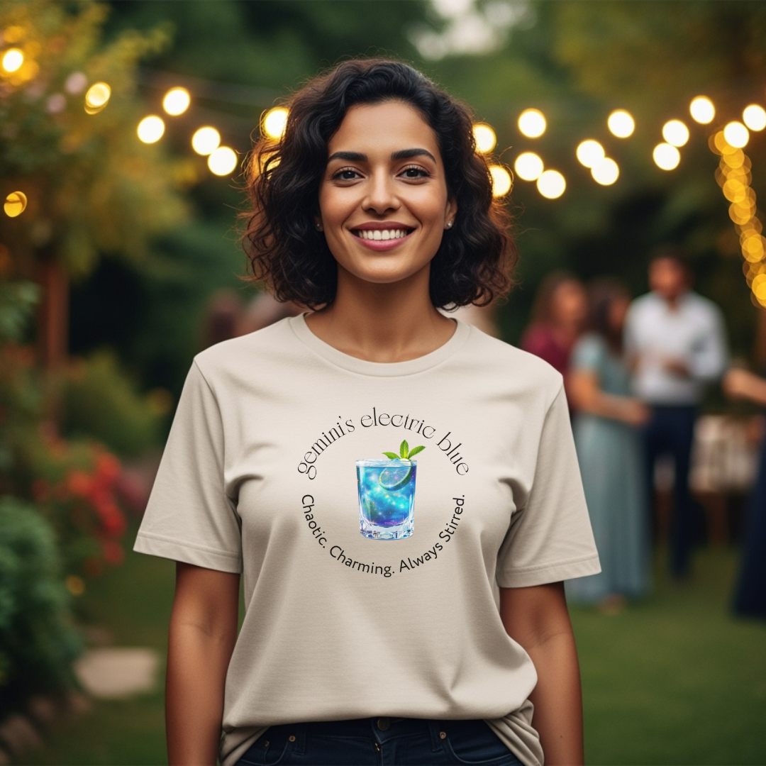 Double the charm, double the fun—say hello to Gemini’s Electric Blue, the cocktail-inspired tee from our ASTROMIXOLOGY™ Collection that’s as bold, vibrant, and unpredictable as the Twins themselves. This isn’t just a shirt—it’s your invitation to light up the night with color, laughter, and cosmic energy.