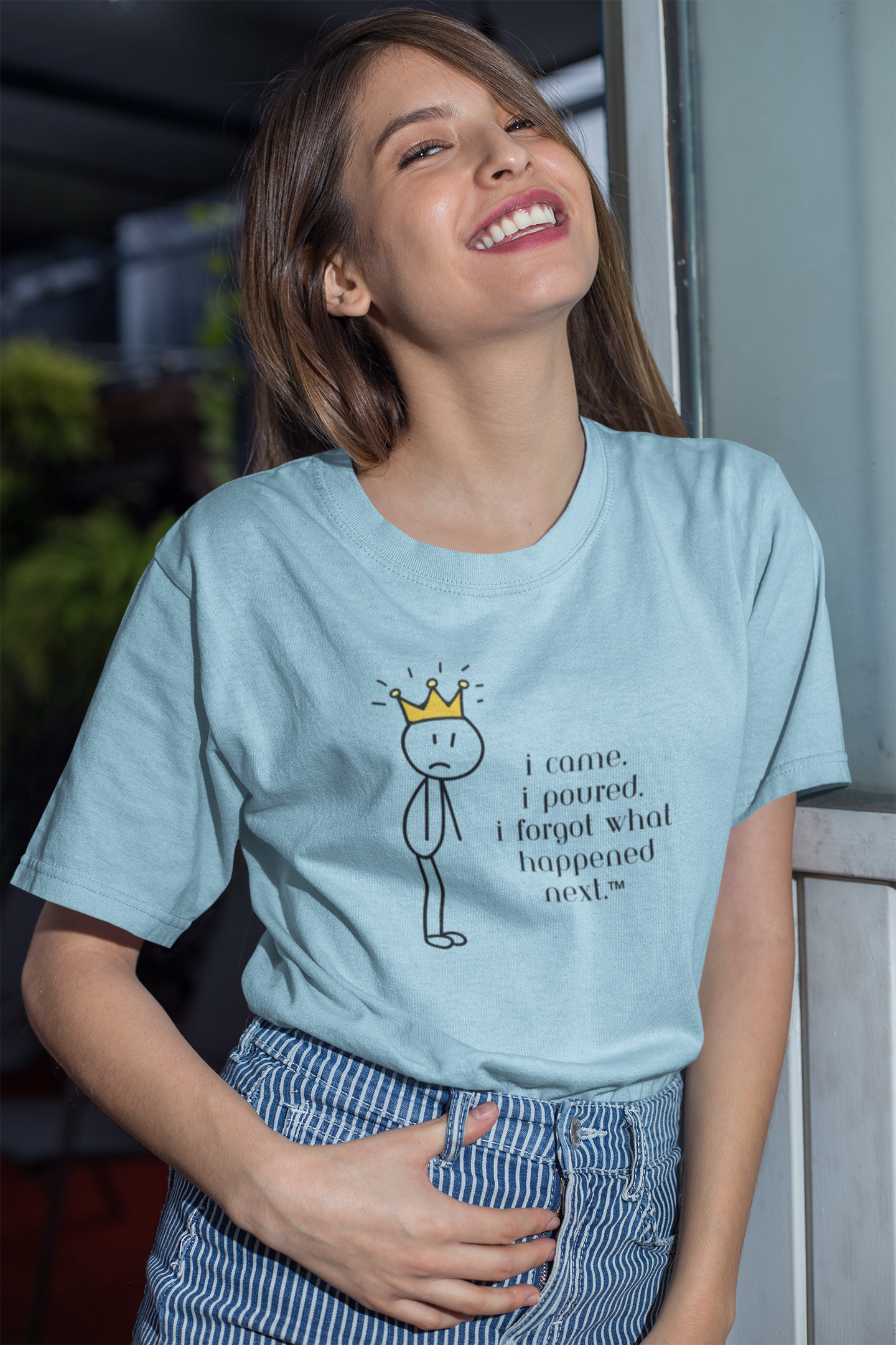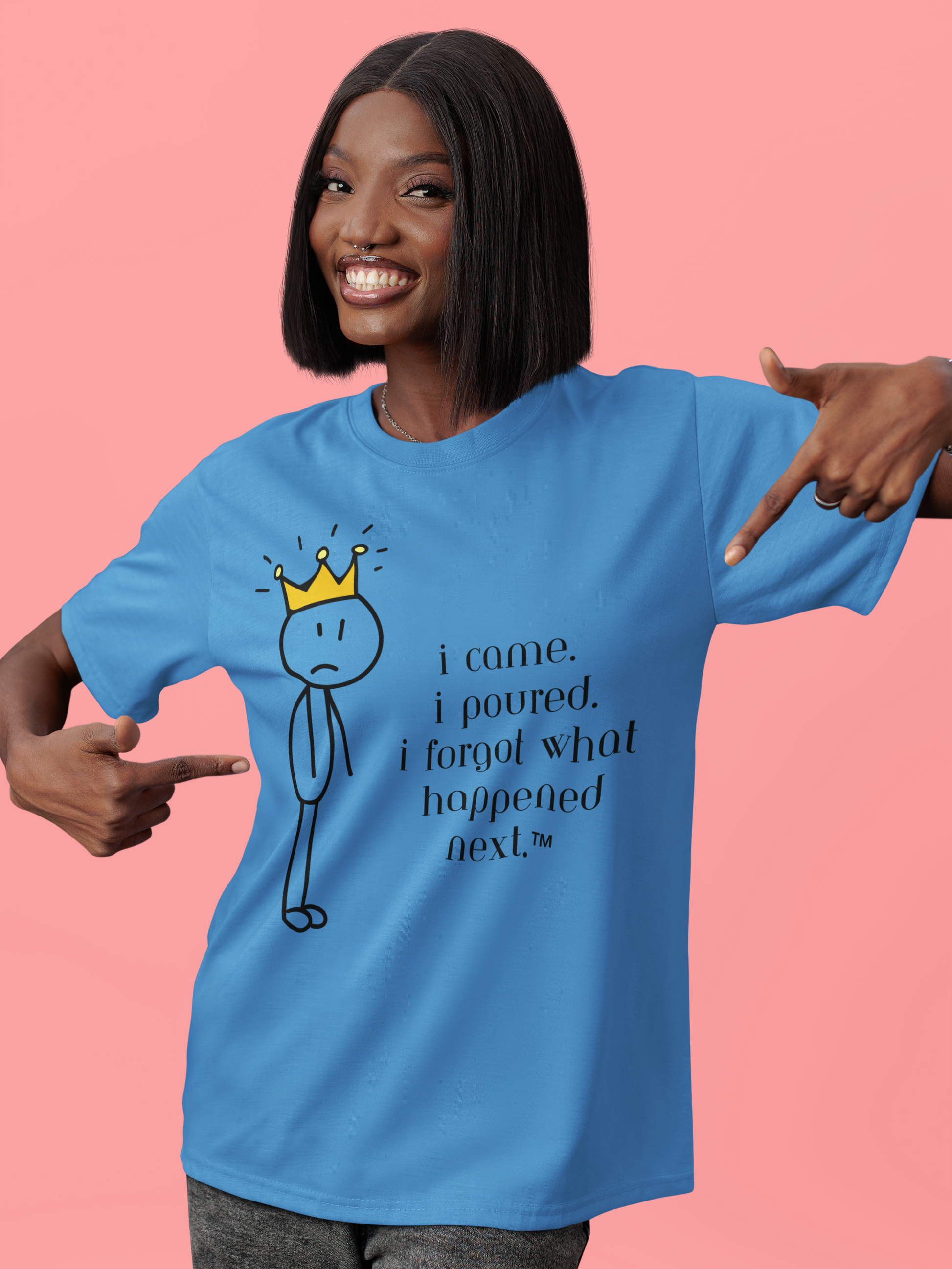Ready to make memories you might not even remember? Meet your new party MVP: the “I Came, I Poured, I Forgot What Happened Next” tee from our POUR DECISIONS™ Collection! This isn’t just a shirt—it’s your ticket to legendary nights and next-level fun.