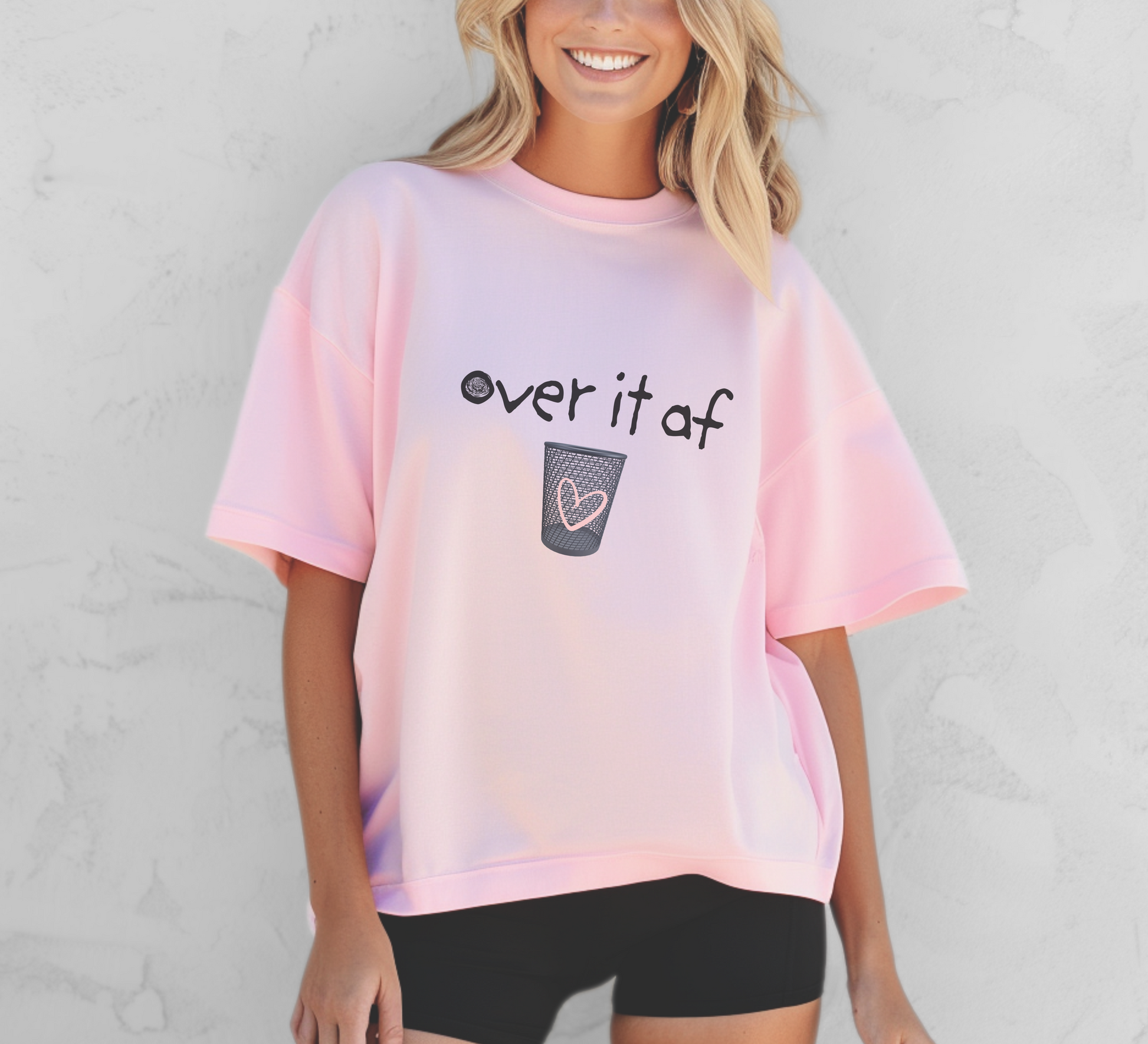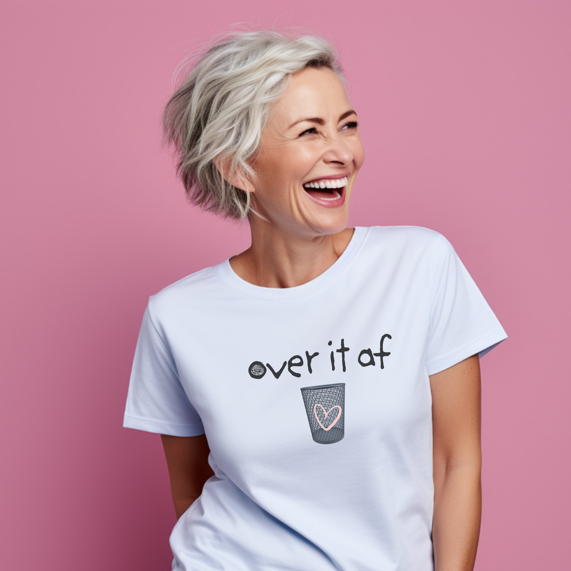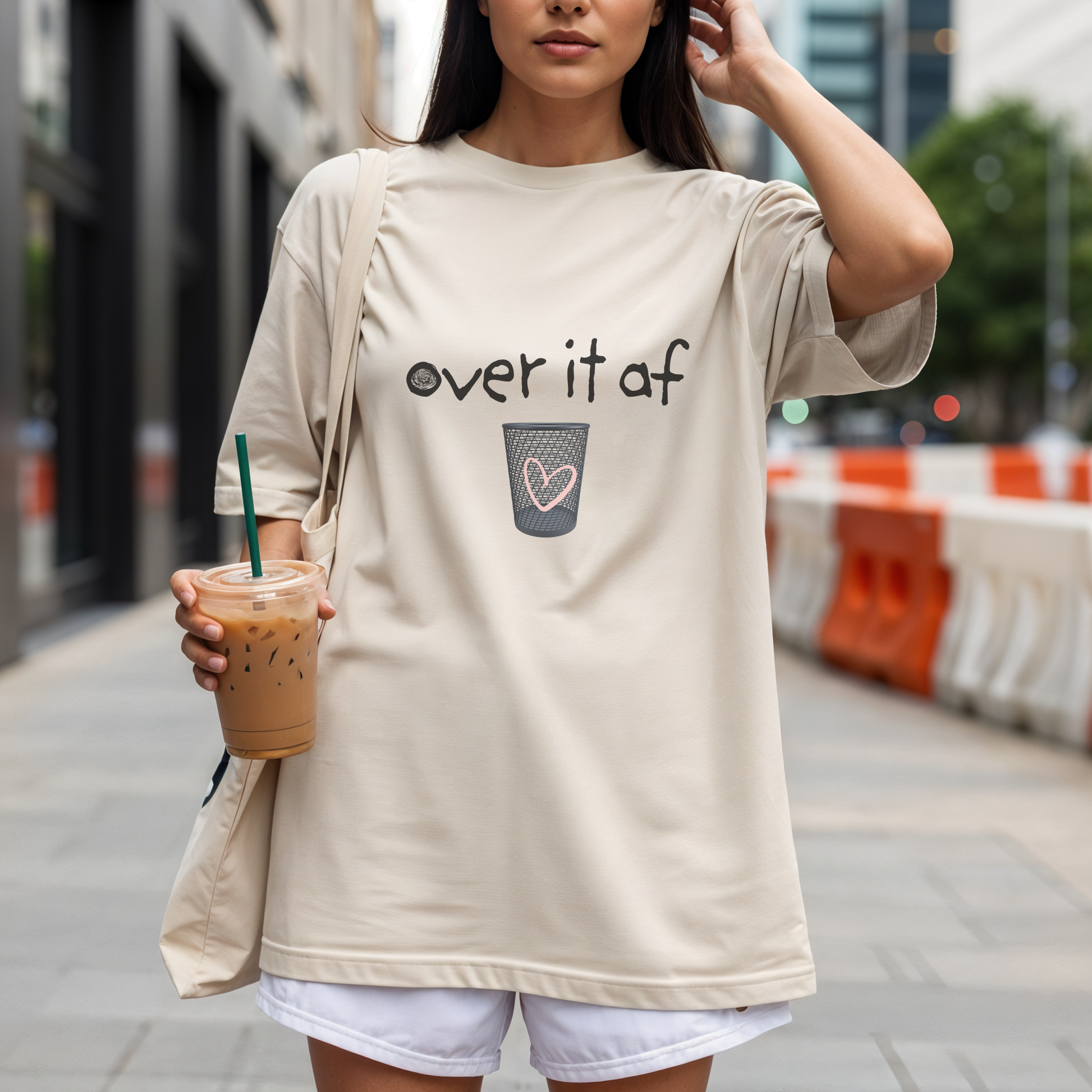 - Over It AF Design: Bold, cheeky message and cute cup graphic for instant mood-lifting energy.