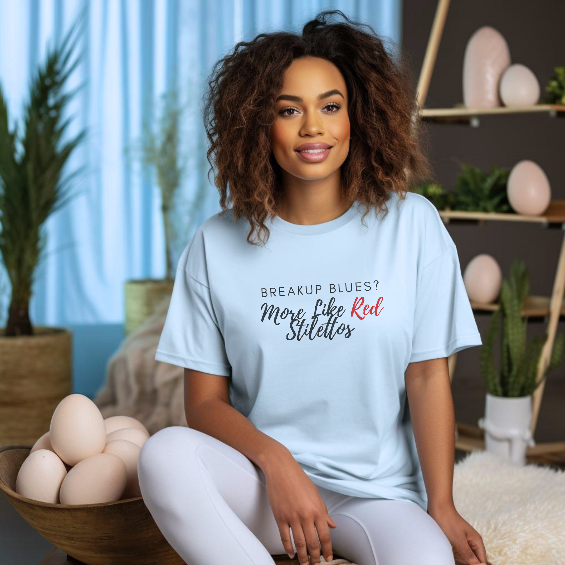 This tee is for the woman who swaps tears for heels and struts into her next adventure. Perfect for divorce parties, breakup bashes, and girls’ weekends, it features sleek script, a pop of red, and a whole lot of sass—because you’re done with the blues and ready to shine.