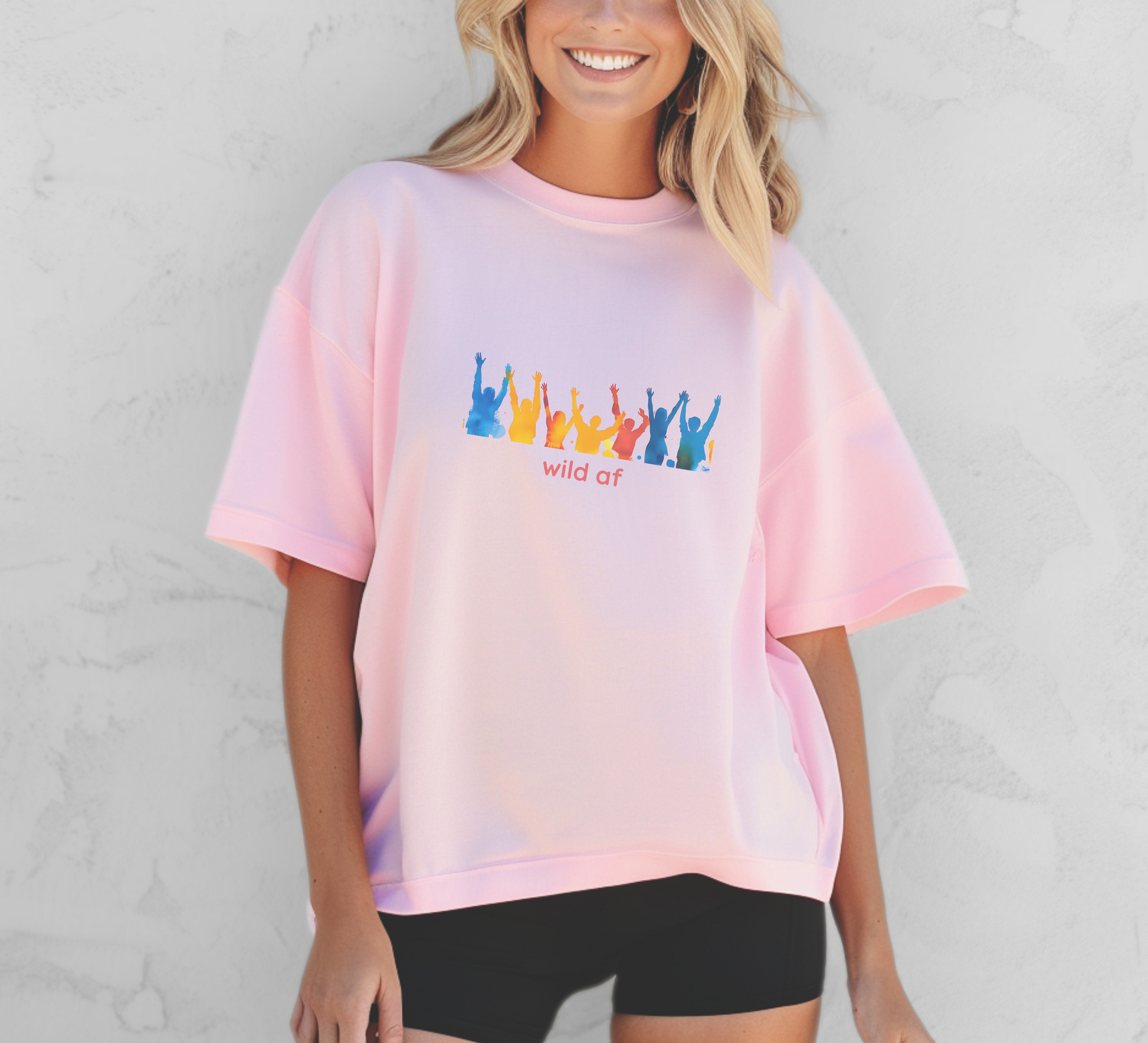 Turn up the volume and let your wild side shine! This tee is for the unstoppable, the untamable, and every Sass Queen who shows up ready to dance on tables and make every night legendary. Featuring a vibrant, watercolor party crew graphic and unapologetic “wild af” script, this shirt is made for bachelorette bashes, festival squads, and every wild memory in the making.