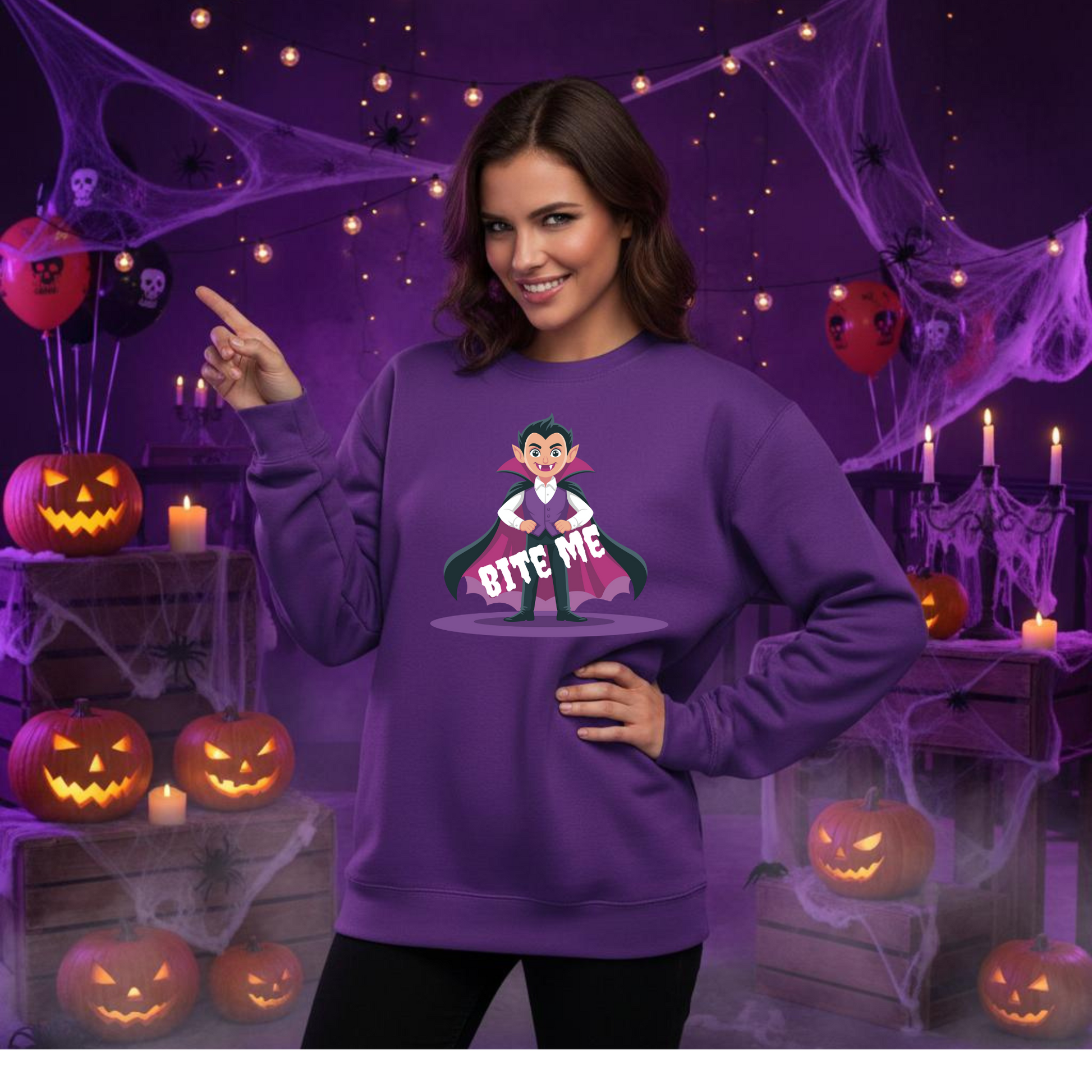 Bite Me Halloween Sweatshirt – Wheel of SCARE QR Party Game Included